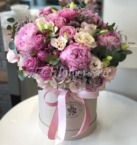 Пионы двух махровых сортов (31 шт) и шапки розовой гортензии в роскошном по-настоящему летнем букете. Обращаем Ваше внимание, что и пионы и гортензии - сезонные цветы, доступные к заказу март - август.