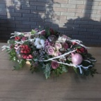 Орхидеи, розы пионовидные, скимия, хризантема одноголовая, зелень