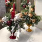 Деревянный ящик с протеей, кустовой пионовидной розой, альстромерией и зеленью.
