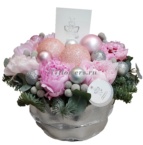 Роза, пионовидная роза, альстромерия, лимониум, вероника, зелень